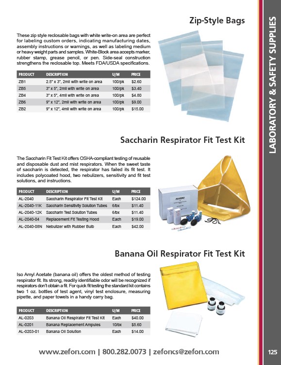 ZB1 ZB5 ZB4 ZB2 AL-2040 AL-2040-11K AL-2040-12K AL-2040-04 AL-0203 Banana Oil Respirator Fit Test Kit AL-0201 AL-0203-01 Banana Oil Solution www.zefon.com | 800.282.0073 | zefoncs@zefon.com