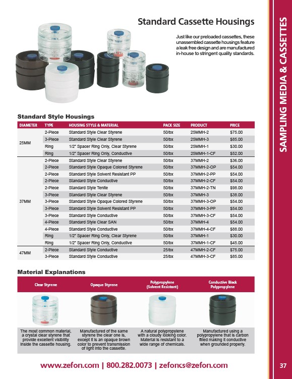 Standard Style Housings Material Explanations www.zefon.com | 800.282.0073 | zefoncs@zefon.com Ring Ring Ring Ring