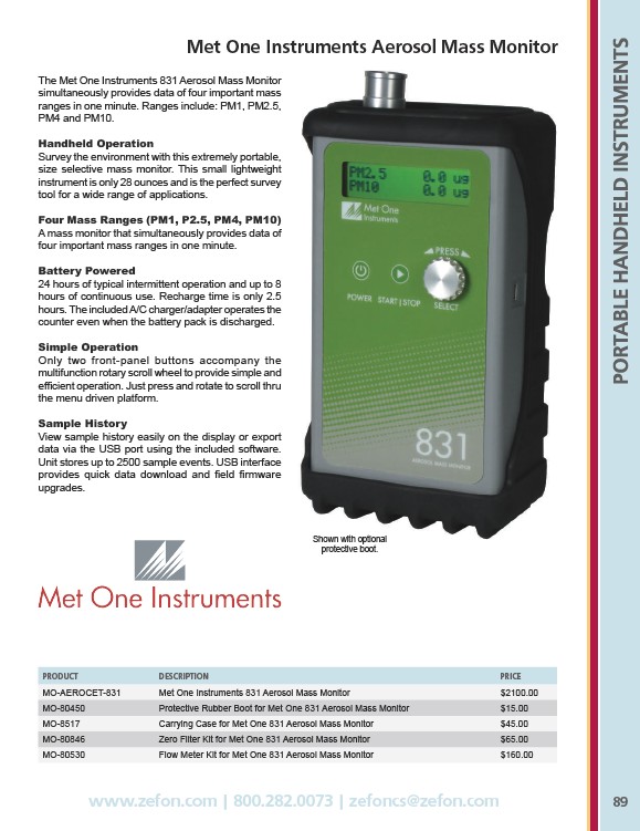 Handheld Operation Four Mass Ranges (PM1, P2.5, PM4, PM10) Battery Powered Simple Operation Sample History Shown with optional www.zefon.com | 800.282.0073 | zefoncs@zefon.com