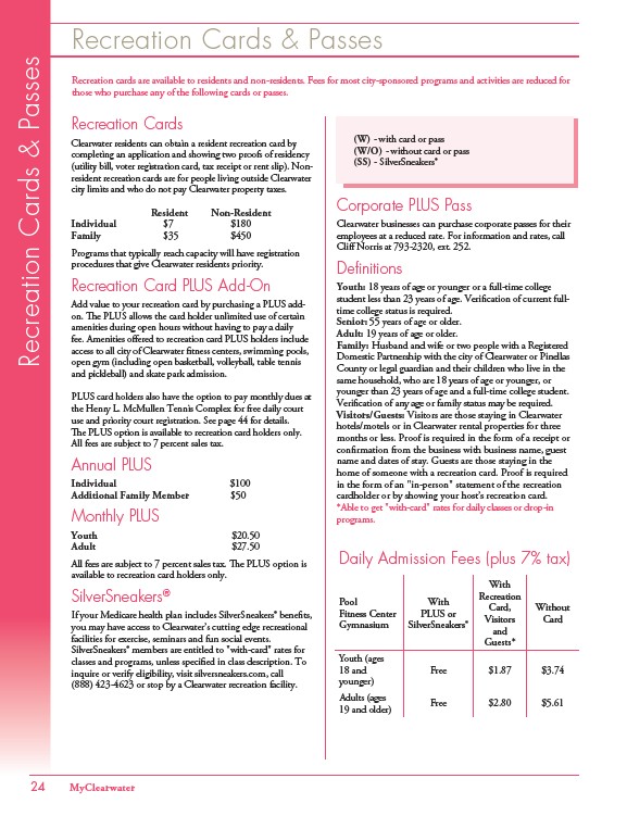 (888) 423-4623 or stop by a Clearwater recreation facility.