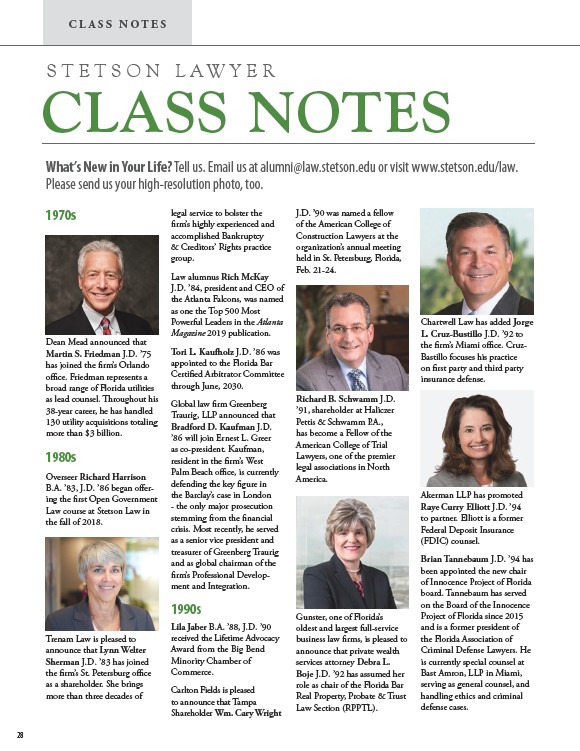 What’s New in Your Life? Tell us. Email us at alumni@law.stetson.edu or visit www.stetson.edu/law.