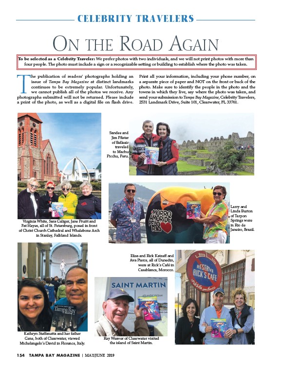 send your submission to Tampa Bay Magazine, Celebrity Travelers,