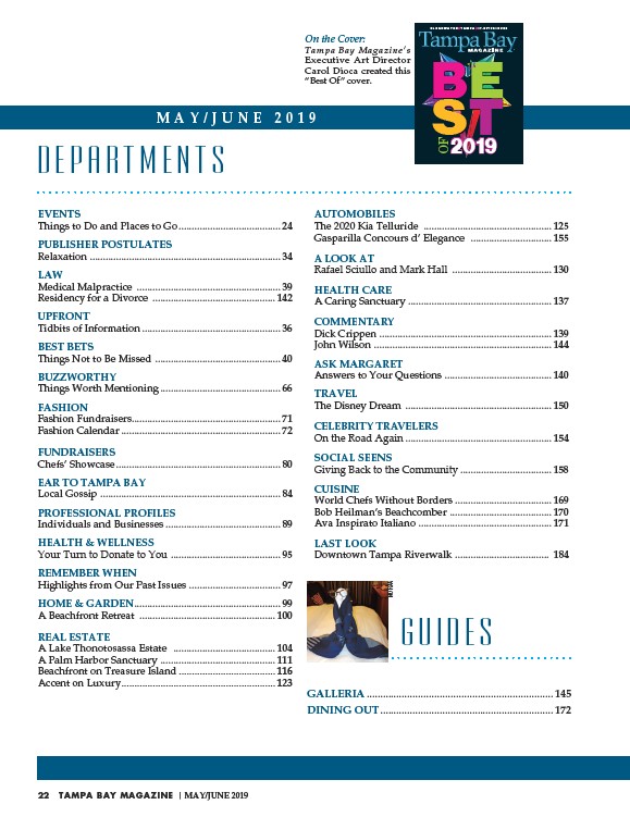 22 TAMPA BAY MAGAZINE | MAY/JUNE 2019