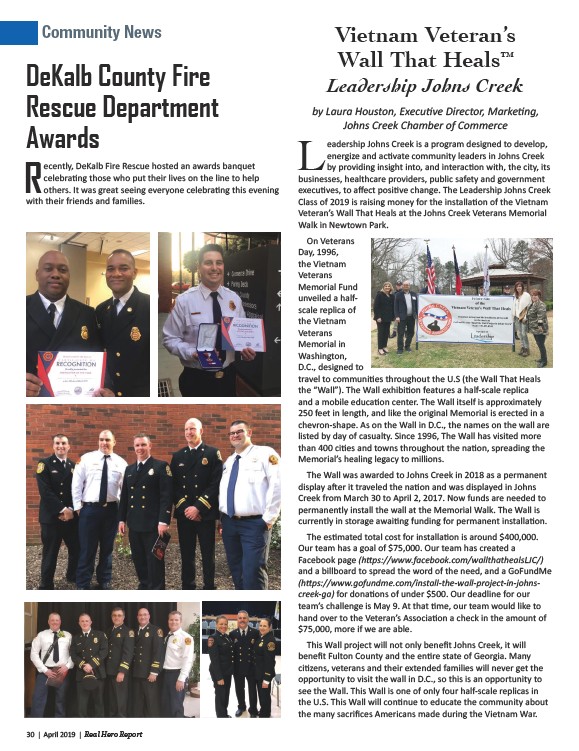 Community News Vietnam Veteran’s | April 2019 | Real Hero Report Wall That Heals™ DeKalb County Fire Leadership Johns Creek Rescue Department Awards L On Veterans Veterans Memorial Fund scale replica of Veterans Memorial in R