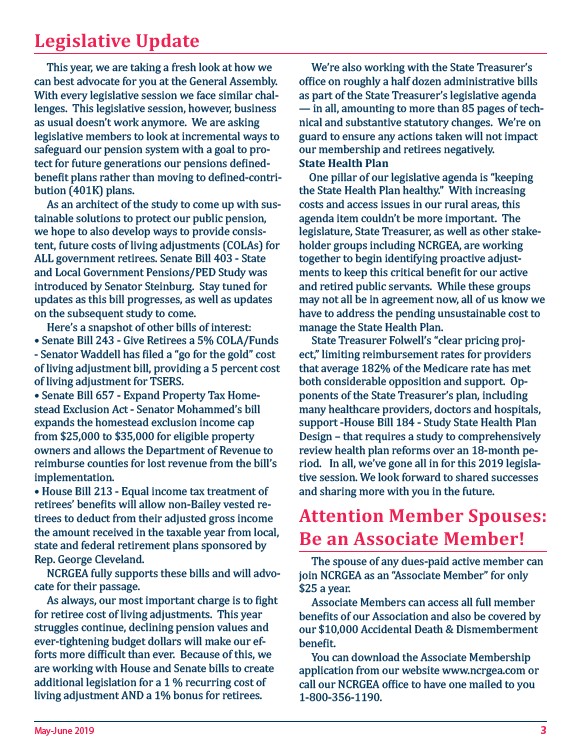 Legislative Update State Health Plan Attention Member Spouses: Be an Associate Member! May-June 2019 3