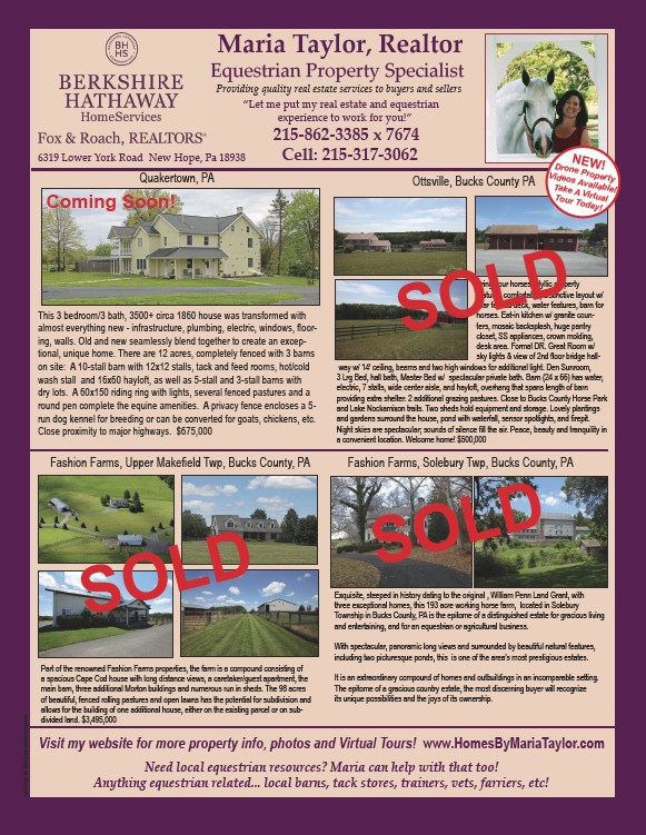 three exceptional homes, this 193 acre working horse farm, located in Solebury