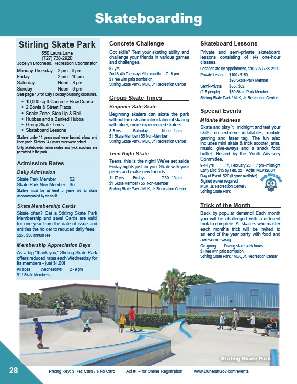 28 Pricing Key: $ Rec Card / $ No Card Act #: = for Online Registration www.DunedinGov.com/events