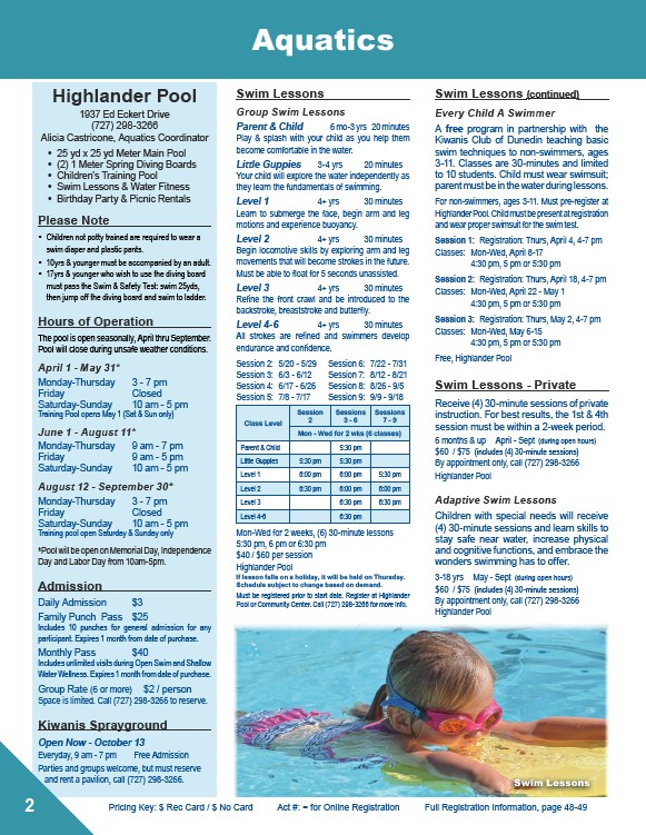 Pricing Key: $ Rec Card / $ No Card Act #: = for Online Registration Full Registration Information, page 48-49