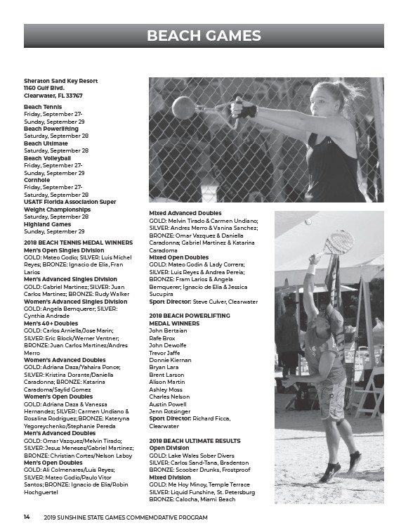 14 2019 SUNSHINE STATE GAMES COMMEMORATIVE PROGRAM