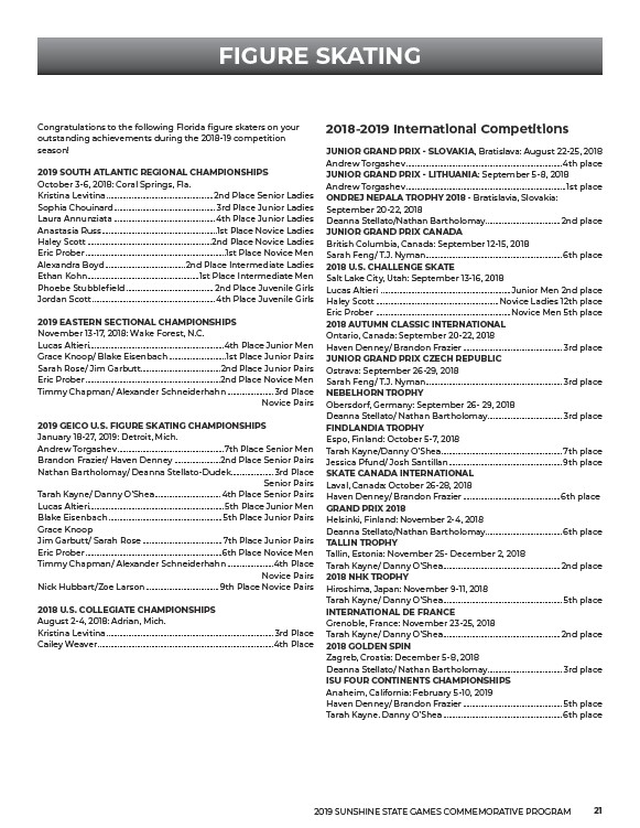 2019 SUNSHINE STATE GAMES COMMEMORATIVE PROGRAM 21