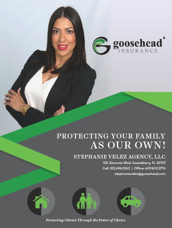 PROTECTING YOUR FAMILY AS OUR OWN! STEPHANIE VELEZ AGENCY, LLC 921 Semoran Blvd. Casselberry, FL 32707 Cell: 321.696.0262 | Office: 407.602.3776 stephanie.velez@goosehead.com Protecting Clients Through the Power of Choice.