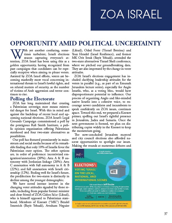 ZOA Israel’s elections engagement has included