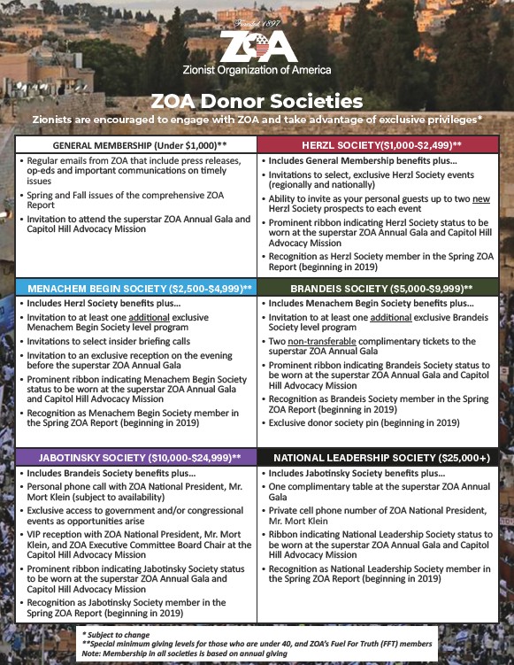 Zionists are encouraged to engage with ZOA and take advantage of exclusive privileges*