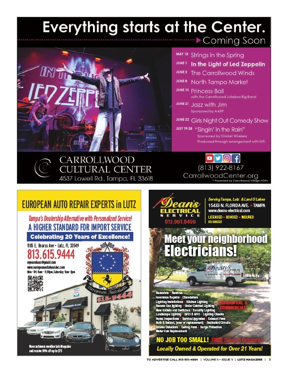 TO ADVERTISE CALL 813-501-4894 | VOLUME II • ISSUE V | LUTZ MAGAZINE | 5