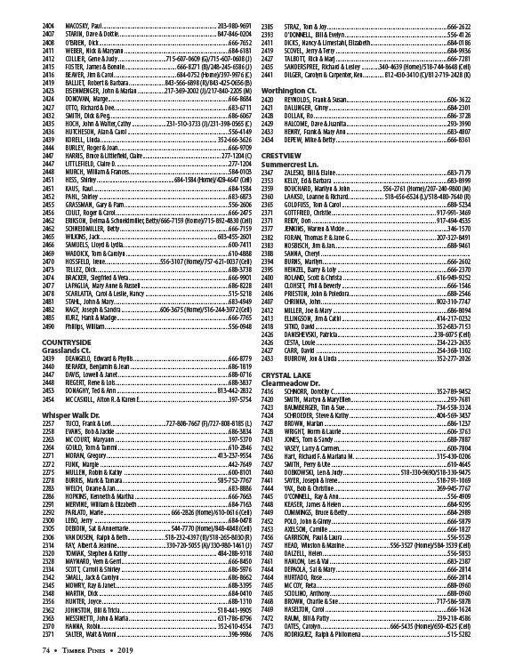 2412 COLLIER, Gene & Judy ................................715-607-0609 (G)/715-607-0608 (J)