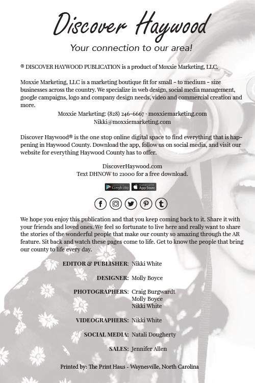 ® DISCOVER HAYWOOD PUBLICATION is a product of Moxxie Marketing, LLC.