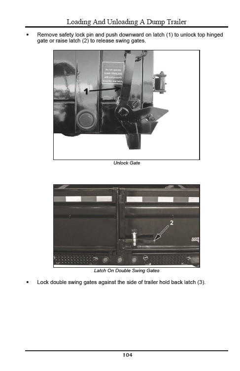Lock double swing gates against the side of trailer hold back latch (3).