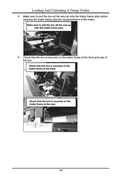 8. Make sure to pull the box all the way up onto the trailer frame stop before