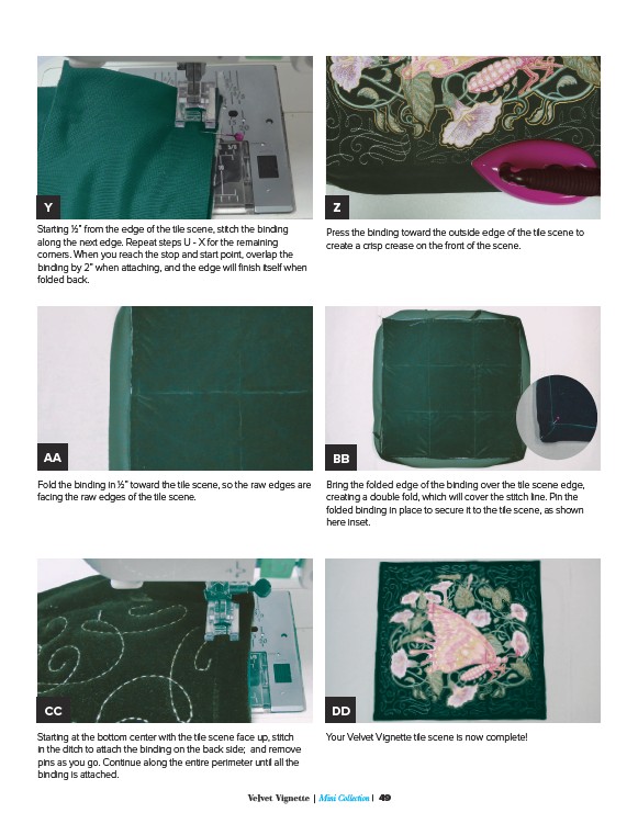 Starting 1⁄2” from the edge of the tile scene, stitch the binding