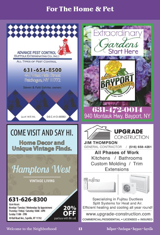 For The Home & Pet Welcome to the Neighborhood 13 Bellport • Patchogue • Bayport • Sayville