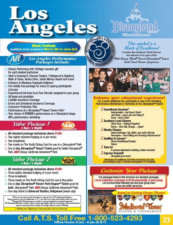 Transportation costs are additional. A.T.S. can assist you with motorcoach and/or air costs.