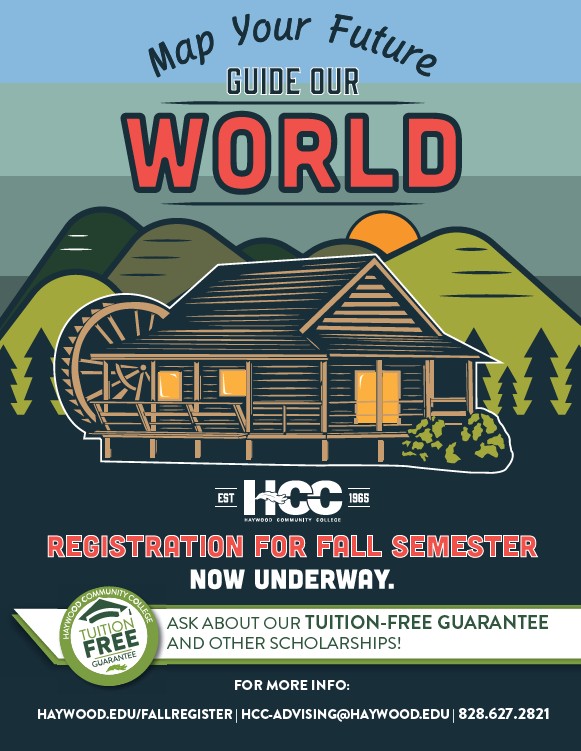 ASK ABOUT OUR TUITION-FREE GUARANTEE AND OTHER SCHOLARSHIPS! FOR MORE INFO: HAYWOOD.EDU/FALLREGISTER | HCC-ADVISING@HAYWOOD.EDU | 828.627.2821