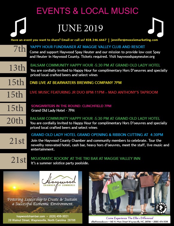 Have an event you want to share? Email or call us! 828.246.6667 I jennifer@moxxiemarketing.com