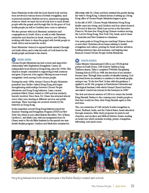 In the fall of 2007, Chosen People Ministries Hong Kong