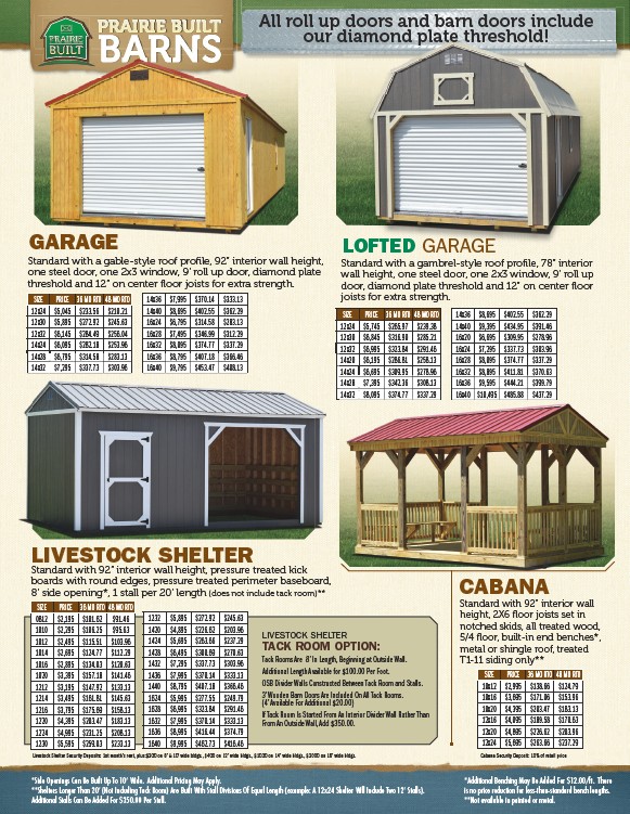 Livestock Shelter Security Deposits: 1st month’s rent, plus:$200 on 8’ & 10’ wide bldgs., $400 on 12’ wide bldgs., $1000 on 14’ wide bldgs., $2000 on 16’ wide bldgs. Cabana Security Deposit: 10% of retail price