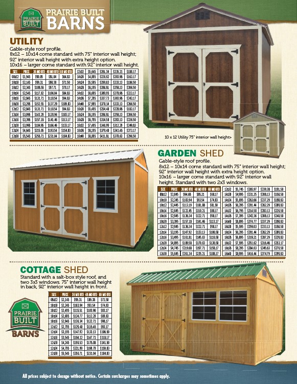 10x16 – larger come standard with 92” interior wall height.