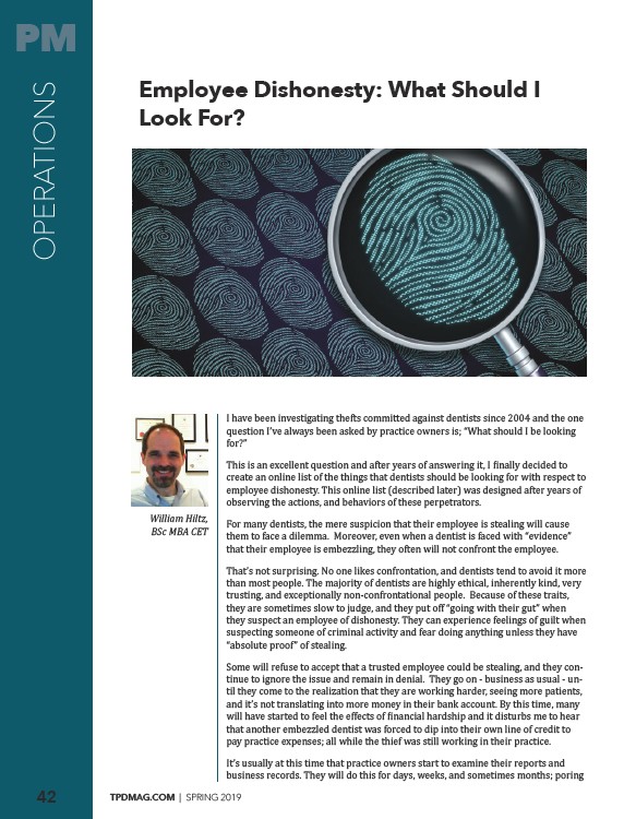 For many dentists, the mere suspicion that their employee is stealing will cause