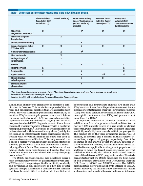 Table 1. Comparison of 5 Prognostic Models used in the mRCC First-Line Setting.