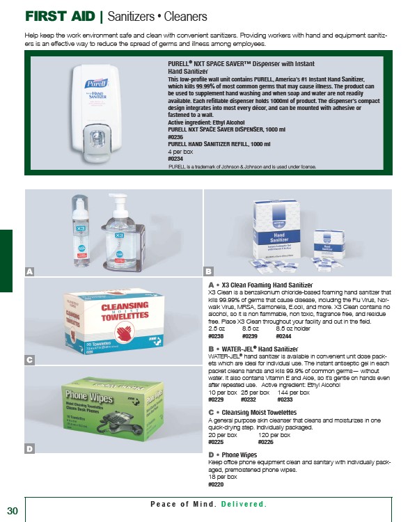 Help keep the work environment safe and clean with convenient sanitizers. Providing workers with hand and equipment sanitiz-