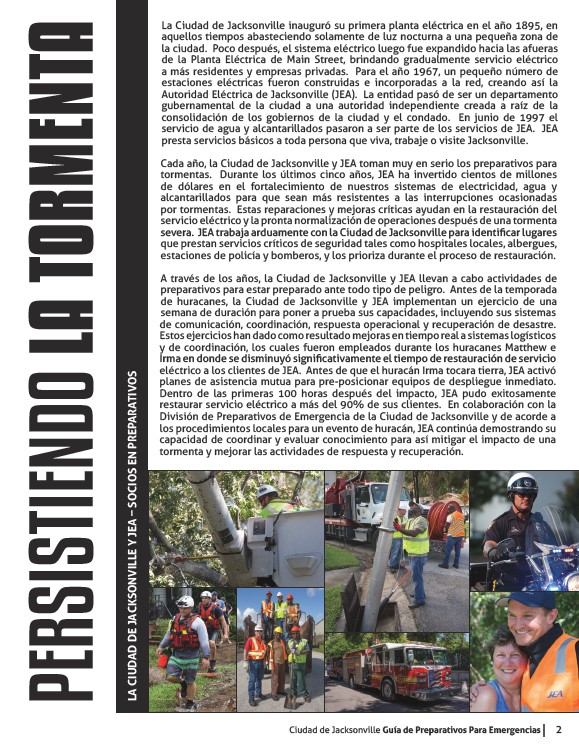 Ciudad de Jacksonville Guía de Preparativos Para Emergencias 2 PERSISTIENDO LA TORMENTA