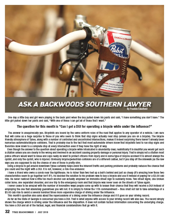 The question for this month is “Can I get a DUI for operating a bicycle while under the influence?”
