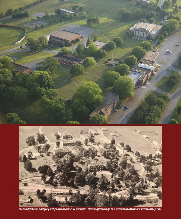The Board of Trustees is accepting RFP's for consideration to sell the campus. There are approximately 300 + acres with an additional 92 acres available for sale.