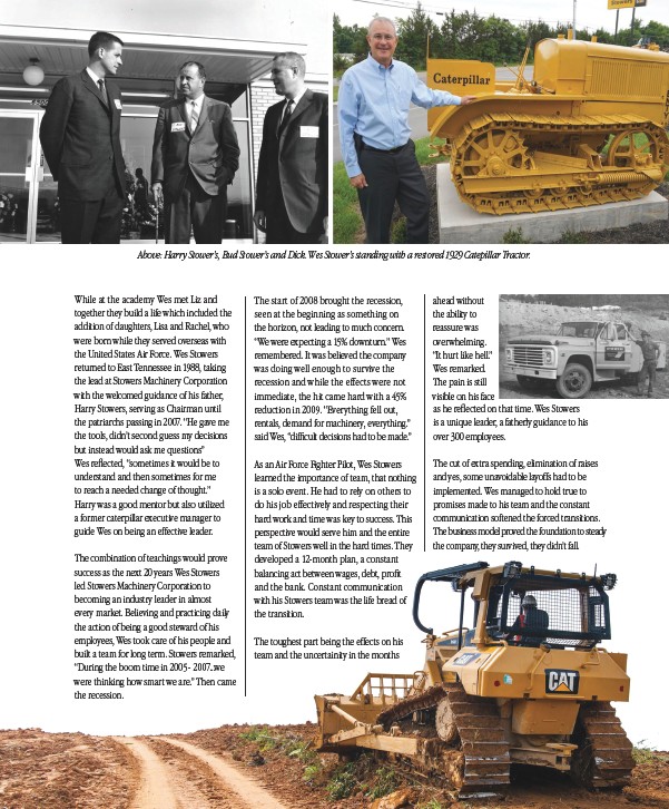 Above: Harry Stower’s, Bud Stower’s and Dick. Wes Stower’s standing with a restored 1929 Catepillar Tractor.