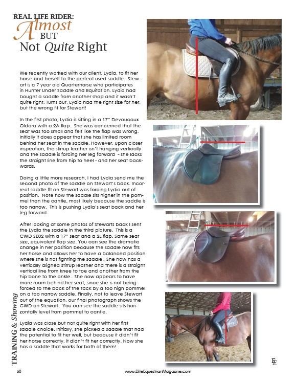 In the first photo, Lydia is sitting in a 17” Devoucoux