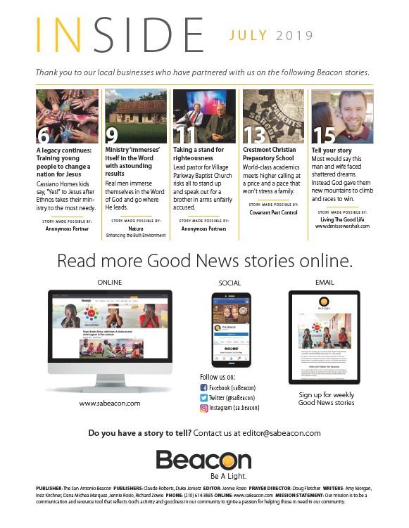 PUBLISHER: The San Antonio Beacon PUBLISHERS: Claude Roberts, Duke Jonietz EDITOR: Jennie Rosio PRAYER DIRECTOR: Doug Fletcher WRITERS: Amy Morgan,