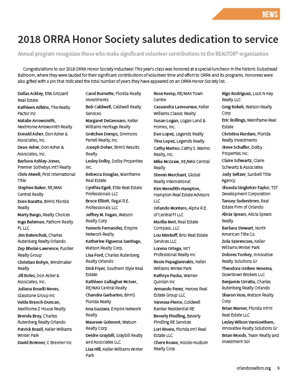 2018 ORRA Honor Society salutes dedication to service
