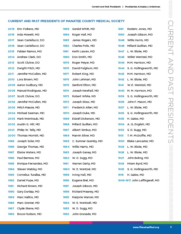 CURRENT AND PAST PRESIDENTS OF MANATEE COUNTY MEDICAL SOCIETY