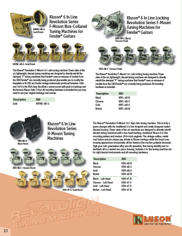 The Kluson® Revolution F-Mount 19:1 ratio locking tuning machine. These