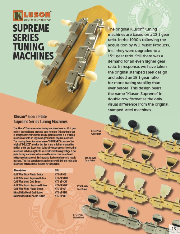 The Kluson® Supreme series tuning machines have an 18:1 gear