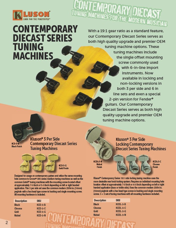 Kluson® Contemporary Series 19:1 ratio locking tuning machine uses the