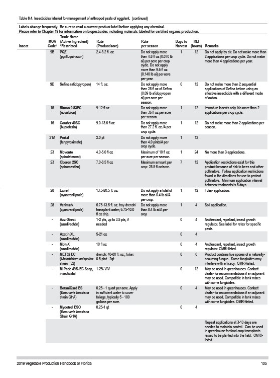 Table 8.4. Insecticides labeled for management of arthropod pests of eggplant. (continued)