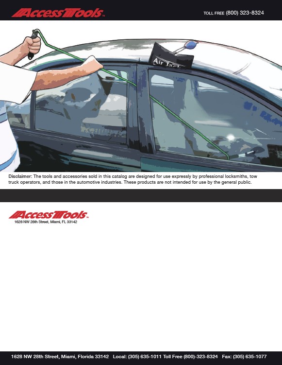 Disclaimer: The tools and accessories sold in this catalog are designed for use expressly by professional locksmiths, tow