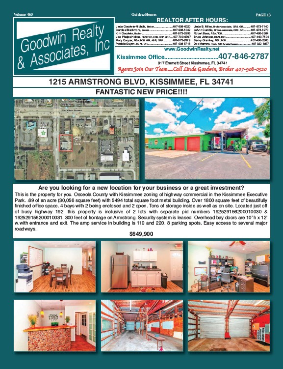 Agents Join Our Team.....Call Linda Goodwin, Broker 407-908-0320