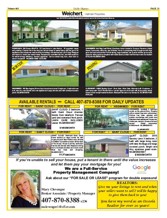 AVAILABLE RENTALS ••• CALL 407-870-8388 FOR DAILY UPDATES