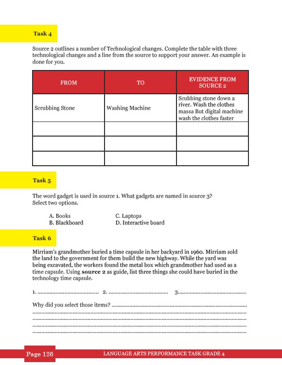Page 126 LANGUAGE ARTS PERFORMANCE TASK GRADE 4