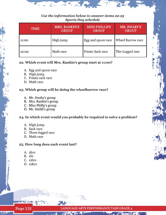 Page 133 LANGUAGE ARTS PERFORMANCE TASK GRADE 4